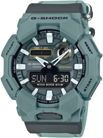 Splňte všechna očekávání a vyberte si z těchto úchvatných hodinek, které se snadno používají, pohodlně nosí a jsou konstruovány pro dlouhou životnost. Představujeme velké pouzdro G-SHOCK s dlouhou výdrží baterie, které doplní váš životní styl zaměřený na přírodu. Modely GD-010 se vyznačují odolností proti nárazům, která odolá i náročnému používání, a baterií s výdrží 10 let. Řemínek je vyroben z bio pryskyřice, materiálu, u kterého se očekává, že pomůže snížit dopad na životní prostředí. Řemínek využívá materiál CORDURA® re/cor™, vyrobený z vysoce odolného vlákna CORDURA® a recyklovaného plastového vlákna PET, a je barven barvivy FOOD TEXTILE z extraktů z echinacey, čímž vznikají jemné, přírodní odstíny. Obě tyto hodinky dodávají nádech stylového, přírodního designu, který se snadno přesouvá od ležérního prostředí až po pracovní situace. *CORDURA® je ochranná známka společnosti INVITSA pro odolné látky. FOOD TEXTILE Značka projektu v módním průmyslu zaměřeného na opětovné využití potravinového odpadu k výrobě originálních barviv a poskytování nití a látek barvených těmito barvivy. Projekt podporuje udržitelný životní styl s konceptem „vdechnout nový život tomu, co by jinak skončilo v odpadu“. * Vzhledem k použití přírodních barviv bude každý výrobek jedinečný a může mít nerovnoměrné zbarvení.